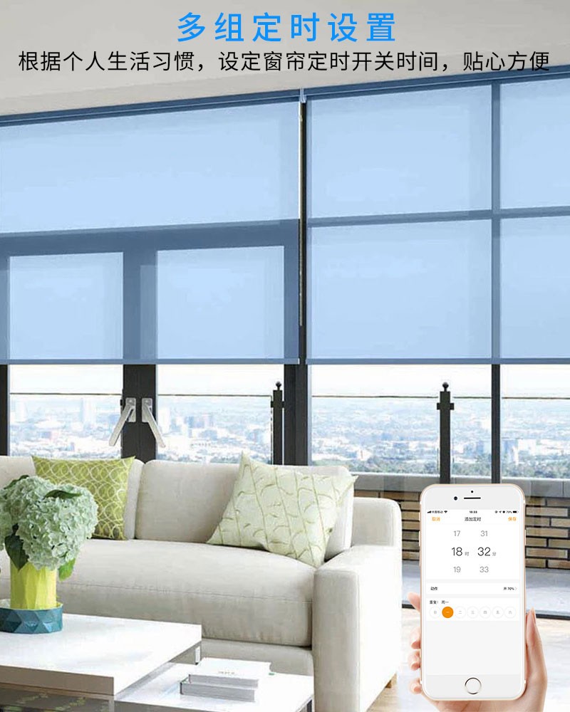 首先智能窗簾是可以通過無線來進行控制的,根本不需要你在下床去拉動窗簾。智能窗簾可以設置場景,還可以定時預約。比如你可以設置每天8:30定制打開窗簾,它會像你設置的鬧鐘一樣,每天定時打開。